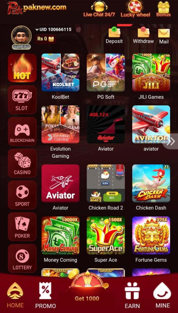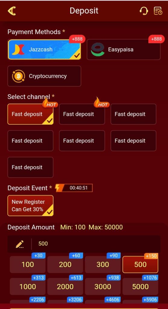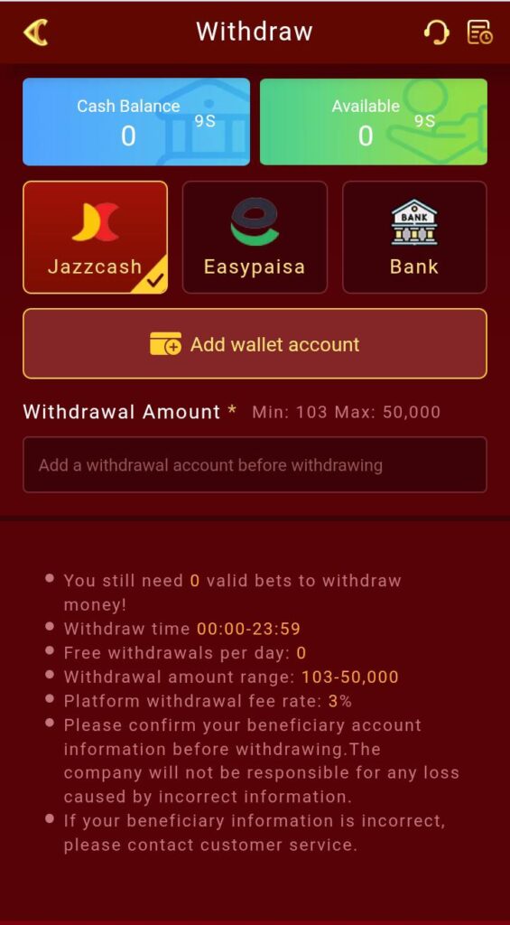 The “Easypaisa and JazzCash Withdraw” feature allows players to easily withdraw their winnings directly to their mobile wallets. This convenient method ensures quick and hassle-free access to your earnings. Whether you’re using Easypaisa or JazzCash, you can manage your funds with ease.