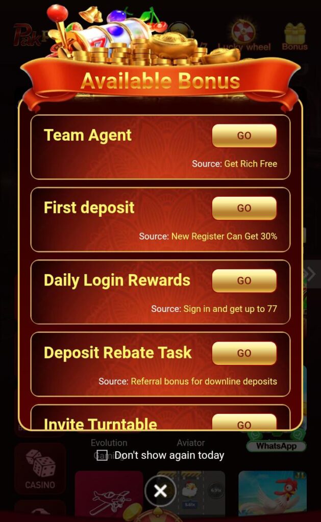 To get started with this slots game, simply download the app or visit the website and register for an account. Once registered, you can make an initial deposit of PAKNew to join a game. From there, you can choose different game rooms, join a round, and start playing!