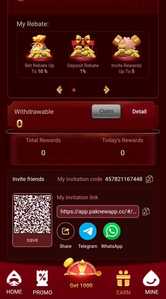 The “Refer and Earn” feature allows you to earn money by inviting your friends to join the game. Each time someone you referred plays the game and makes a deposit, you receive a reward. This is a great way to boost your earnings without having to play more rounds yourself!